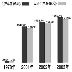 2003年全市生產(chǎn)總值達(dá)到1662.4億元,比上年增長12.1%,增速比上年加快0.3個(gè)百分點(diǎn),為近5年來最高增幅。人均生產(chǎn)總值21460元。