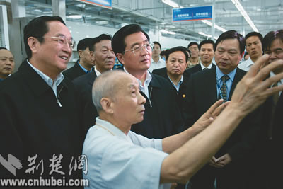 胡錦濤重點就提高自主創(chuàng)新能力進(jìn)行了考察。他先后來到風(fēng)神襄樊汽車有限公司、東風(fēng)康明斯發(fā)動機(jī)有限公司、襄樊正大農(nóng)業(yè)開發(fā)有限公司、武漢鋼鐵(集團(tuán)) 公司、烽火通信科技股份有限公司、長飛光纖光纜有限公司、武漢華工正源光子技術(shù)有限公司等企業(yè)進(jìn)行實地調(diào)研,進(jìn)車間,到班組,與企業(yè)領(lǐng)導(dǎo)和員工共商改革和發(fā)展方略。在烽火通信科技股份有限公司生產(chǎn)線旁,胡錦濤與趙梓森院士、余少華博士等光電子專家親切握手,詳細(xì)聽取趙梓森院士關(guān)于光電子技術(shù)發(fā)展情況和戰(zhàn)略趨勢的分析。當(dāng)了解到該公司掌握了一批光通信領(lǐng)域核心技術(shù),承擔(dān)了我國“十五”計劃、“863計劃”等多項重大課題,90%以上的科研成果實現(xiàn)了產(chǎn)業(yè)化時,胡錦濤肯定了該公司開發(fā)具有自主知識產(chǎn)權(quán)的核心技術(shù)和關(guān)鍵技術(shù),通過提高自主創(chuàng)新能力增強(qiáng)企業(yè)的核心競爭力的做法。他說,提高自主創(chuàng)新能力,是保持經(jīng)濟(jì)長期平穩(wěn)較快發(fā)展的重要支撐,是調(diào)整經(jīng)濟(jì)結(jié)構(gòu)、轉(zhuǎn)變經(jīng)濟(jì)增長方式的重要支撐,是建設(shè)資源節(jié)約型、環(huán)境友好型社會的重要支撐,也是提高我國經(jīng)濟(jì)的國際競爭力和抗風(fēng)險能力的重要支撐。我們要把增強(qiáng)自主創(chuàng)新能力作為科學(xué)技術(shù)發(fā)展的戰(zhàn)略基點和調(diào)整經(jīng)濟(jì)結(jié)構(gòu)、轉(zhuǎn)變經(jīng)濟(jì)增長方式的中心環(huán)節(jié),努力走出一條具有中國特色的科技創(chuàng)新之路。