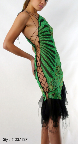 桑德拉?羅德斯是將倫敦推向七十年代時尚前沿陣地的英國新生代設(shè)計(jì)師之一。她的設(shè)計(jì)一直延續(xù)著透明光亮的風(fēng)格,極有創(chuàng)造性,浪漫,夸張且優(yōu)美,大膽且嬌柔,她所設(shè)計(jì)的服裝經(jīng)久不衰,這都是桑德拉?羅德斯的作品的特點(diǎn)。她的靈感一般都來源與有機(jī)的材料或者大自然。我對服裝工業(yè)的接近顛覆的舉動在于,她是第一個把衣服的縫口顛倒來縫的設(shè)計(jì)師,她是第一個把衣服的縫口顛倒來縫的設(shè)計(jì)師,也是第一個讓縫口在衣服上顯露出來的設(shè)計(jì)師。她為“朋克”設(shè)計(jì)花俏的時裝,并在她的“概念性時髦”系列時裝中用別針把撕碎的衣裙再接起來——比范思哲用同樣的手法設(shè)計(jì)時裝早了差不多二十年。
