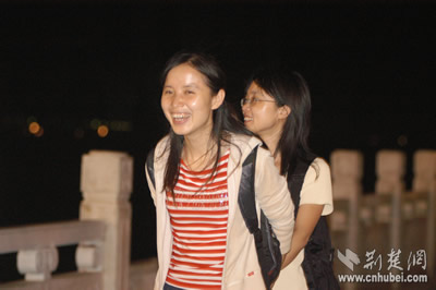 中老年人成了這里夜間的主角,他們把“表演”的陣地轉(zhuǎn)移到了這里。有人帶來了音響,有人踏著音樂節(jié)拍盡情舞動(dòng),看的人也是頻頻點(diǎn)頭饒有興致?鞓返倪有孩子們,四處打鬧,盡情享受屬于他們的歡樂。也有人只是席地而坐,在迎面而來的江風(fēng)里,體味一份難得的輕松。