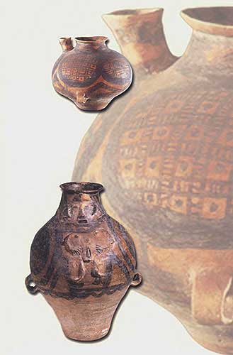 彩陶人像陶壺:水器(下,高34厘米)[相關(guān)鏈接]:20世紀中國百項考古大發(fā)現(xiàn)(1-20)21、大溪遺址(圖)22、城頭山遺址(圖)23、屈家?guī)X遺址(圖)24、崧澤遺址(圖)25、馬家窯遺址(圖)26、柳灣墓地(圖)27、牛河梁遺址(圖)28、城子崖遺址(圖)29、良渚文化遺址群(圖)30、石家河遺址群(圖)31、陶寺遺址(圖) 32、王城崗遺址(圖)33、齊家坪遺址(圖)34、卡若遺址(圖)35、石峽遺址(圖) 36、東灣仔北遺址(圖)37、圓山遺址(圖)38、二里頭遺址(圖)39、東下馮遺址(圖)40、夏家店遺址(圖)