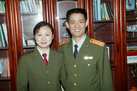 聶海勝和愛人聶捷琳、女兒聶天翔在家中