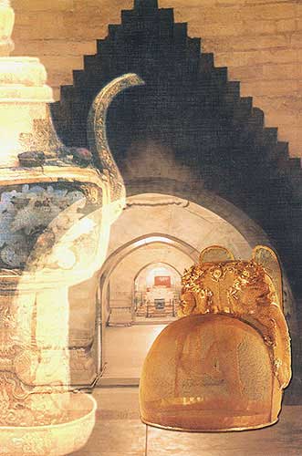 嵌玉龍、寶石金酒注:酒器(左,高21.8厘米) 金翼善冠:儀仗用具(右,高24匣米)[相關(guān)鏈接]:20世紀(jì)中國(guó)百項(xiàng)考古大發(fā)現(xiàn)(1-20)20世紀(jì)中國(guó)百項(xiàng)考古大發(fā)現(xiàn)(21-40)20世紀(jì)中國(guó)百項(xiàng)考古大發(fā)現(xiàn)(41-60)20世紀(jì)中國(guó)百項(xiàng)考古大發(fā)現(xiàn)(61-70)20世紀(jì)中國(guó)百項(xiàng)考古大發(fā)現(xiàn)(71-80)81、云崗石窟(圖)82、龍門石窟(圖)83、敦煌莫高窟(圖)84、龍興寺佛教造像窖藏(圖)85、隋大興唐長(zhǎng)安城遺址(圖)86、隋唐洛陽城遺址(圖)87、隋代虞弘墓(圖)88、唐代帝陵陪葬墓(圖)89、法門寺塔基與地宮(圖)90、阿斯塔那墓地(圖)91、渤海上京龍泉府遺址(圖) 92、南唐二陵(圖)93、白沙宋墓(圖)94、遼陳國(guó)公主墓(圖)95、龍泉青瓷窯址(圖)96、耀州窯遺址(圖) 97、西夏王陵(圖)98、古格故城遺址(圖)99、元大都遺址(圖)100、明定陵(圖)