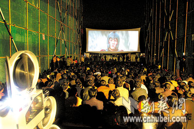 荊楚網(wǎng)(楚天都市報(bào))(記者 楊峰洲 黃宏 通訊員 崔偉 攝影)昨晚,電影《神話》在武漢江岸區(qū)二七路“黃浦人家”建筑工地放映,500多名農(nóng)民工兄弟度過(guò)了一個(gè)充滿愛(ài)的夜晚。