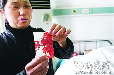 記者看到,阮師傅裝在口袋里的欠條都被鮮血染紅了。他的妻子哭著說,家里還有一對(duì)年幼的兒女,遭此橫禍,連5000元的醫(yī)藥費(fèi)都湊不齊啊。 |