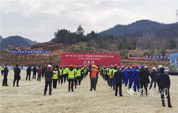 荊楚網(wǎng)客戶端—荊楚網(wǎng)消息(記者趙秀琳 通訊員周漓)1月20日,咸寧市2021年第一季度重大項(xiàng)目集中開工活動(dòng)舉行,由湖北交投集團(tuán)投資建設(shè)的咸寧至九江高速公路咸寧段項(xiàng)目開工建設(shè)。