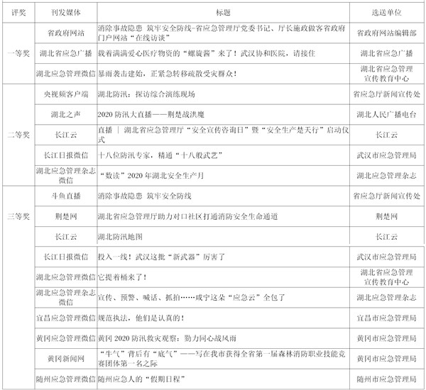 2020年,湖北應急人牢記初心使命、踐行訓詞精神,圍繞安全生產(chǎn)、防災減災救災、應急救援三大主責主業(yè),經(jīng)歷戰(zhàn)疫、戰(zhàn)洪、戰(zhàn)貧三場大考,打贏防范化解重大安全風險攻堅戰(zhàn),向全國、全省人民展現(xiàn)了不懼艱險、逆向而行的應急鐵軍風采,諸多工作成果受到媒體廣泛關注。來自各級各媒體記者、應急管理戰(zhàn)線的通訊員,精心撰寫、拍攝、制作了一大批形式豐富、內(nèi)容精彩精品力作,深入宣傳我省應急管理改革發(fā)展成效。經(jīng)評審委員會評審,69部(篇)“好新聞作品”從報送的上千條作品中脫穎而出,分獲文字、廣播電視、攝影、新媒體四大類一、二、三等獎,現(xiàn)將獲獎作品予以發(fā)布。