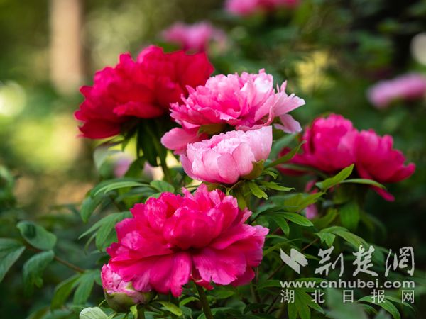 清明期間,武漢植物園內3000株牡丹全部盛放,驚艷國色等您來賞。‘寒櫻獅子’‘島錦’‘富貴滿堂’等牡丹清香四溢,風姿綽約,盡顯牡丹的“國色天香”。武漢植物園牡丹園以保育展示江南品系、西南品系、中原品系和外國品系為主,目前保育牡丹3000株,有紅、粉、紫、墨、黃、白等花色,單瓣、荷花、繡球、臺閣等花型。色澤淡雅的??的档ぽp逸出塵,一展牡丹的婉約風姿。日本牡丹‘島錦’一花雙色,花朵在紅白相間,為少見的復色牡丹。還有墨色的‘珠光墨潤’,不僅色彩驚艷,花瓣還有著綢緞般光澤,為黑牡丹中的佼佼者。綠牡丹‘綠幕隱玉’如翡翠瑩潤通透,堪稱花中珍品。此外,園內國內外名品薈萃,展示牡丹的絕代風采。