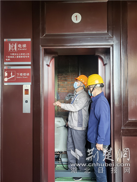 檢驗(yàn)員對(duì)黃鶴樓景區(qū)內(nèi)的電梯進(jìn)行檢驗(yàn)