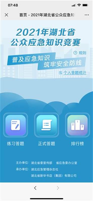 據(jù)了解,湖北省委宣傳部、湖北省突發(fā)事件應急管理委員會辦公室聯(lián)合發(fā)起2021年湖北省公眾應急知識競賽活動。此次活動旨在深入貫徹落實《中共湖北省委宣傳部、湖北省突發(fā)事件應急管理委員會辦公室關于廣泛學習宣傳和深入普及公眾應急知識的通知》要求,更好地提升全民應急素質,在全社會形成人人知安全風險、人人樹風險意識、人人筑安全基礎的良好氛圍。