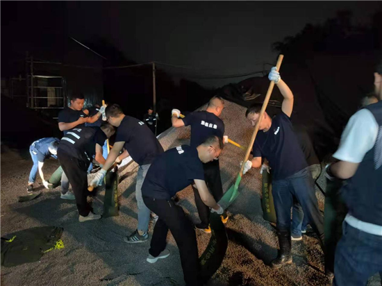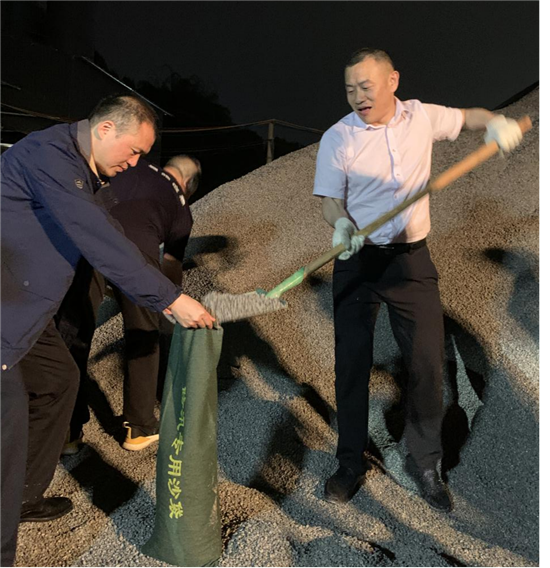 應(yīng)急管理局黨委書記曾偉、局長(zhǎng)何榮齊上陣,帶頭裝沙干勁足