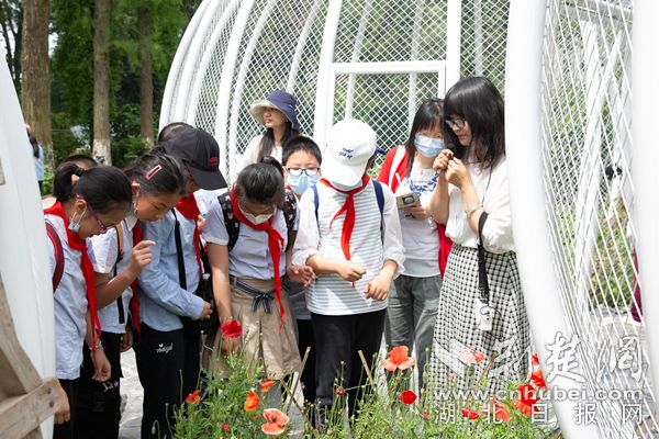 在武漢植物園本草園的西側(cè)的活體罌粟展示區(qū),五個(gè)白色的罌粟果實(shí)狀籠子格外顯眼。活動(dòng)現(xiàn)場(chǎng),湖北省禁毒委員會(huì)、武漢植物園和梅苑學(xué)校師生代表一起為活體罌粟展示區(qū)改造工程揭幕,標(biāo)志著武漢植物園禁毒科普教育基地重新開(kāi)園。