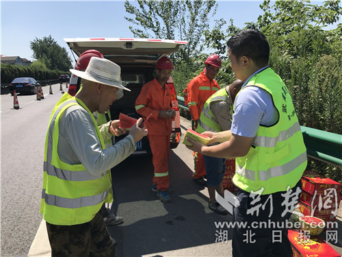 據(jù)悉,為確保高溫天氣的交通安全,武黃運營公司不僅為司乘帶來消暑飲品,還及時對高速路路面上的坑槽病害進行排查、修復路面交安設施、維護道路的清潔,保障高速公路的安全暢通。