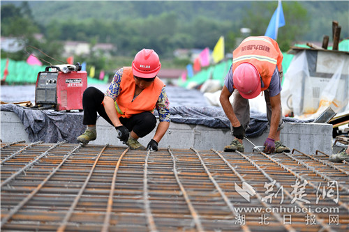 荊楚網(wǎng)(湖北日報網(wǎng))訊(記者趙秀琳 通訊員楊麗芳、 楊韜)鋼筋加工區(qū)機器轟鳴,橋面焊接火花四濺……8月16日,??悼h馬良鎮(zhèn)重陽村沮河大橋建設(shè)現(xiàn)場一片繁忙景象,工人們正在對引橋焊接、扎籠、制模工作,確保項目按期完工。