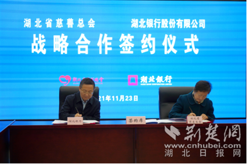 儀式上,省慈善總會駐會副會長馬京芳與湖北銀行黨委委員、副行長、武漢業(yè)務管理總部總裁李俊喜簽訂《戰(zhàn)略合作協(xié)議》。雙方有關部門負責人參加活動。