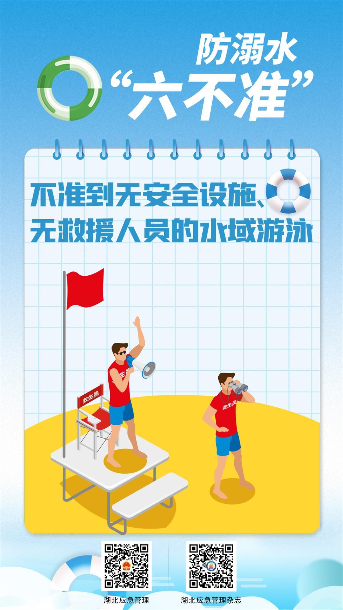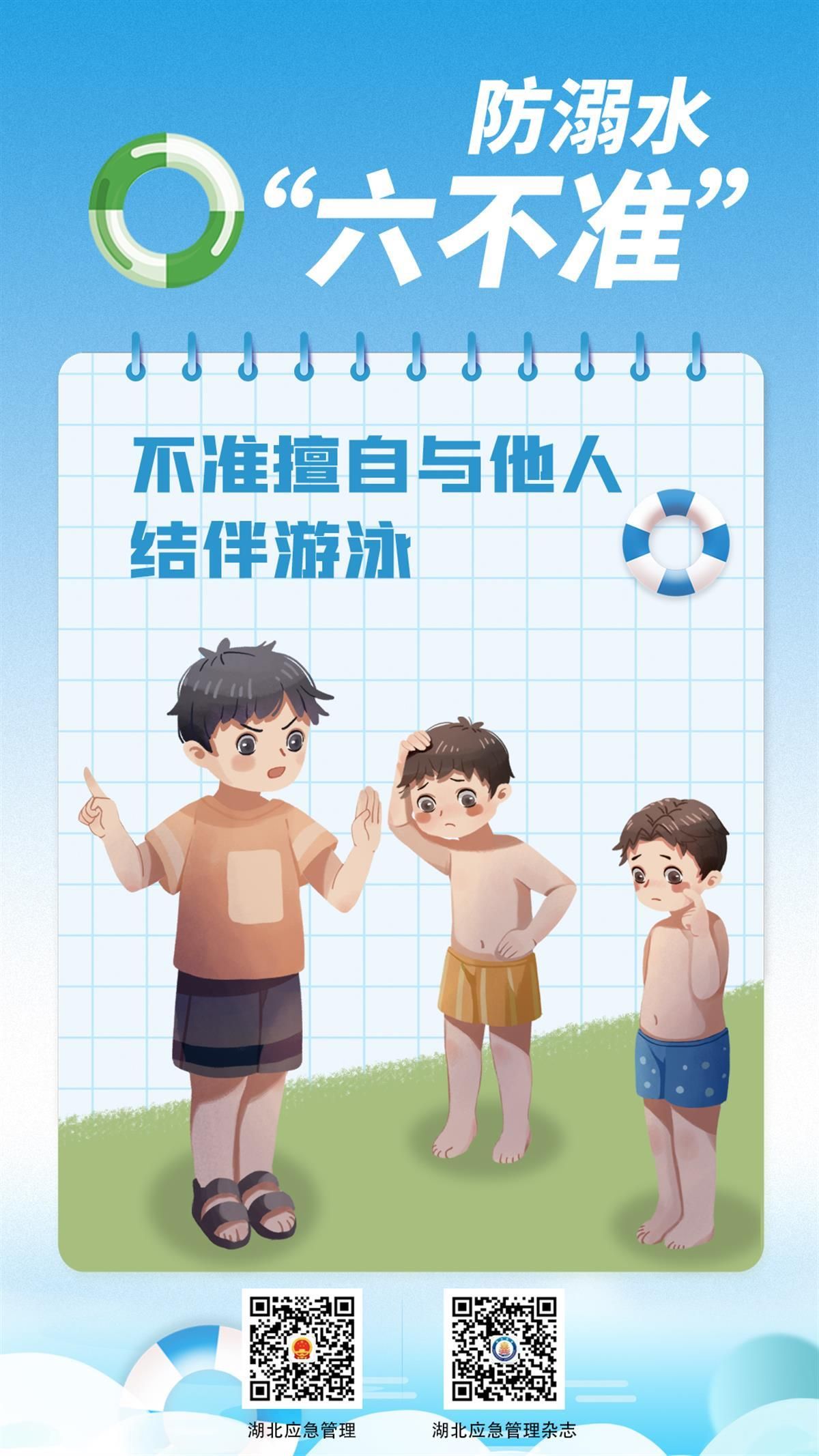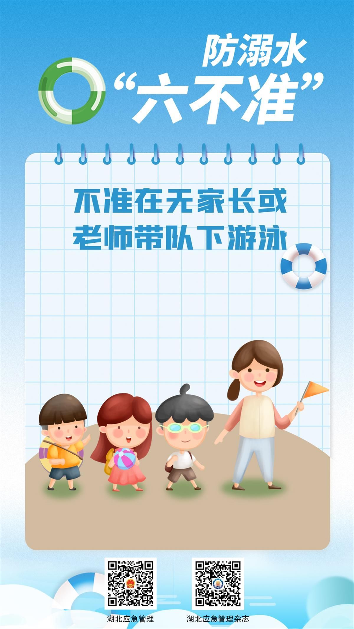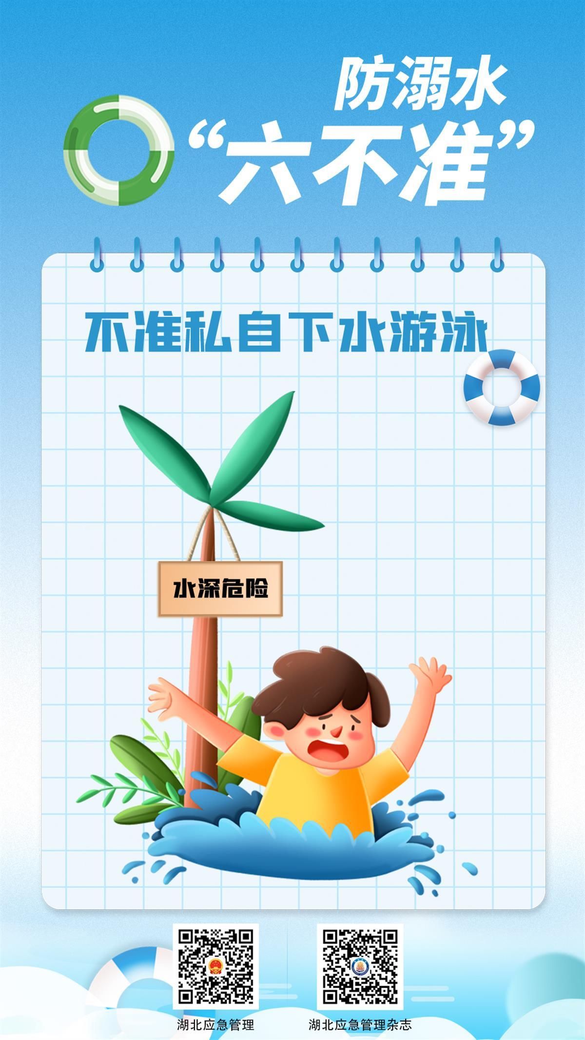 如何避免悲劇發(fā)生?7月8日,湖北省應(yīng)急管理廳發(fā)布系列海報,提醒學(xué)生防溺水應(yīng)做到“六不準(zhǔn)”:不準(zhǔn)私自下水游泳;不準(zhǔn)擅自與他人結(jié)伴游泳;不準(zhǔn)在無家長或教師帶領(lǐng)的情況下游泳;不準(zhǔn)到無安全設(shè)施、無救援人員的水域游泳;不準(zhǔn)到不熟悉的水域游泳;不準(zhǔn)未成年人擅自下水施救。