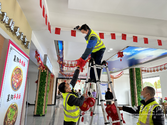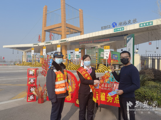 據(jù)了解,春運開始前,湖北高速各個服務區(qū)、收費站就陸續(xù)在貼窗花、掛彩旗、插國旗,貼心籌備春運物資,營造現(xiàn)場氛圍。