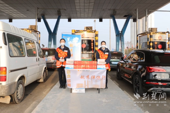 1月17日下午,琴臺收費站工作人員身著“紅馬甲”與綬帶,為過往司乘熱情發(fā)放日歷、春聯(lián)、門福等小禮品,并免費提供應急藥品、方便食品、咨詢等志愿服務。
