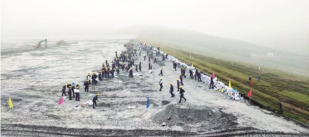 湖北大峪口磷石膏庫舉行綜合演練,現(xiàn)場(chǎng)模擬山體邊坡坍塌處置。