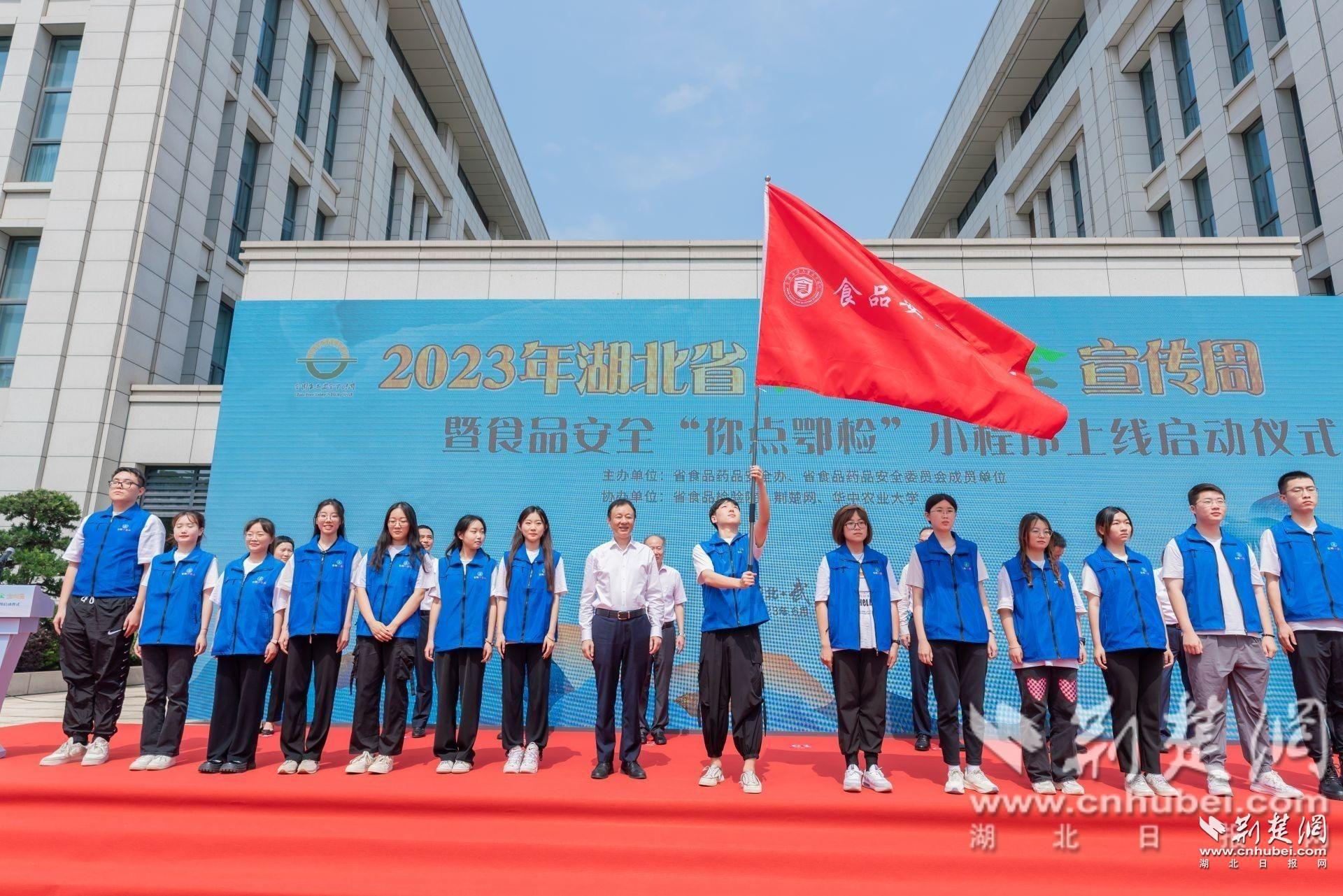 活動現場,省政府副秘書長趙俊發(fā)布2023年湖北省食品安全宣傳周暨食品安全“你點鄂檢”小程序正式上線啟動命令,向華中農業(yè)大學“食品安全湖北行”社會實踐活動團隊授旗。