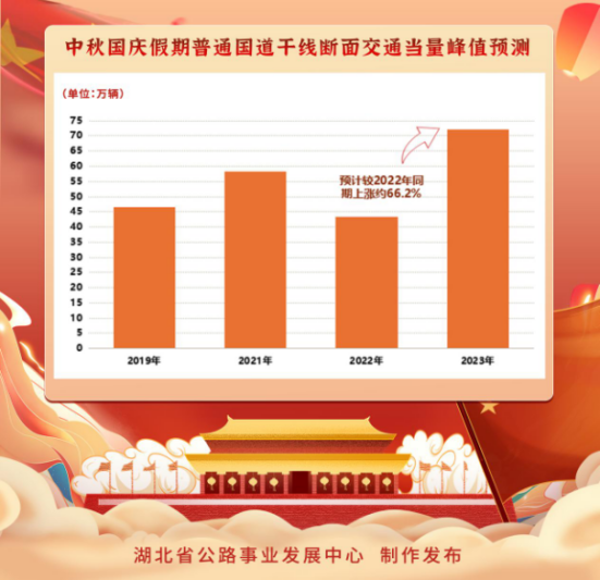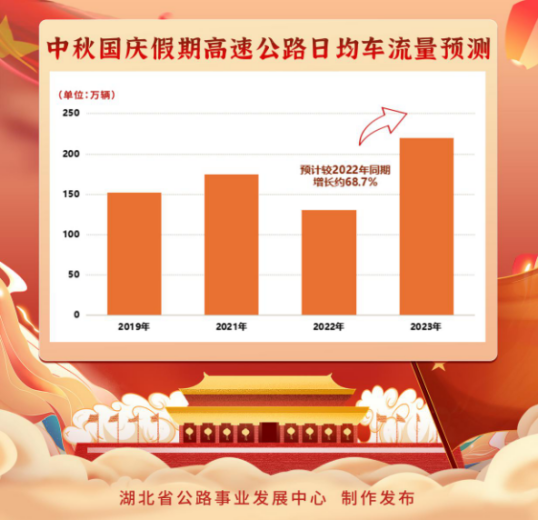湖北省公路事業(yè)發(fā)展中心通過分析歷年公路網(wǎng)運(yùn)行數(shù)據(jù),對比近年來中秋國慶期間天氣、車流量等情況,結(jié)合近期全省路網(wǎng)運(yùn)行實(shí)際,預(yù)計(jì)節(jié)日期間高速路網(wǎng)通行車輛流量較近期平日日均流量增長約100%,較2022年同期日均流量增長約68.7%。