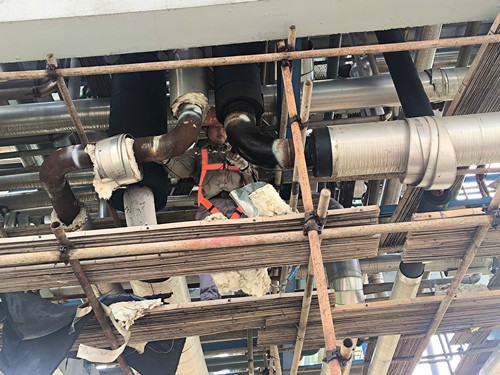 在此次檢驗任務接近尾聲時,一組檢驗人員發(fā)現(xiàn)有兩臺關鍵設備——閃蒸冷卻器的筒體上存在腐蝕減薄,并通過強度校核確認該設備目前的情況已不能安全運行到下個檢驗周期。對此,檢驗人員迅速書面告知企業(yè)相關負責人,并第一時間向當?shù)乇O(jiān)察部門匯報。為不影響企業(yè)開車復工的時間,檢驗人員在完成當天的檢驗工作后,連夜與使用單位設備負責人、維修單位商討維修方案,并積極與設計單位進行確認,最終在企業(yè)開車復工前兩小時順利完成維修監(jiān)檢確認?!笆菣z驗人員的付出與堅守,才能保障檢驗任務順利完成,保障了企業(yè)安全生產(chǎn)。”企業(yè)相關負責人表示由衷的感謝。