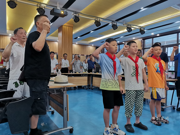 少年興則國家興,少年強(qiáng)則國家強(qiáng)。歐景苑社區(qū)開展“薪火傳承鑄軍魂,老少同堂慶八一”主題活動(dòng),青少年們與退役軍人歡聚一堂,共同觀看了紀(jì)錄片《為了和平》。少先隊(duì)員為退役老兵們系上鮮艷的紅領(lǐng)巾,并敬上隊(duì)禮。退役老兵代表戴三善分享了自己的從軍經(jīng)歷,孩子們聚精會(huì)神地聆聽著,心中升起對(duì)參軍的憧憬。