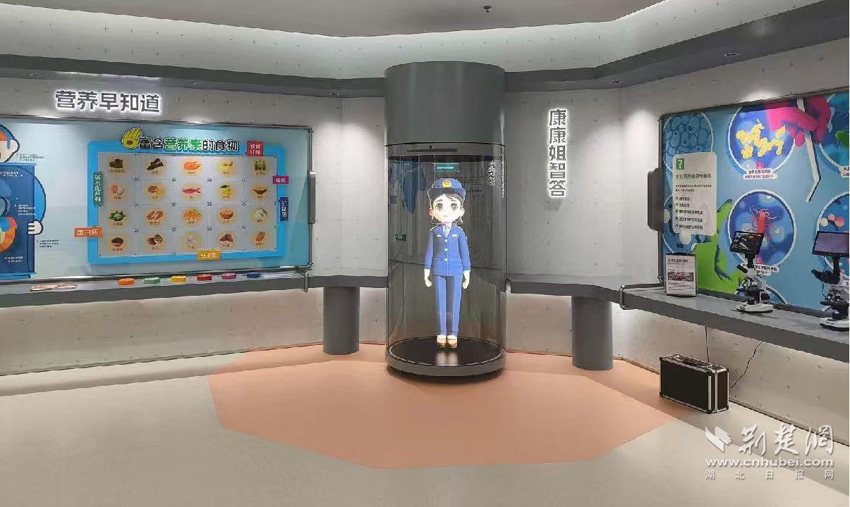 “康康姐”AI數(shù)字人是以武漢市市場監(jiān)管局的卡通代言人“康康姐”為原型設計,參觀者不但可以向她提出有關食品生產(chǎn)、經(jīng)營方面的問題,也可以探索食品世界的知識、破解食品安全謠言。