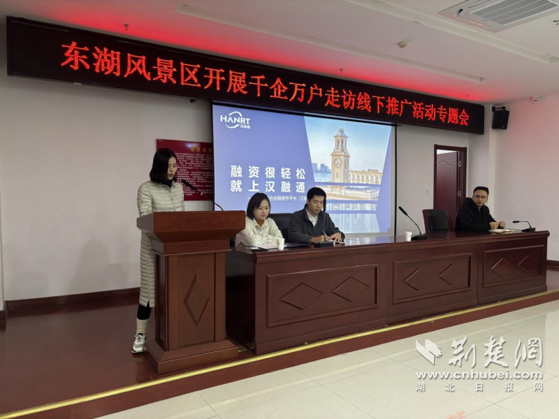 荊楚網(wǎng)(湖北日?qǐng)?bào)網(wǎng))訊(通訊員 姜聰敏)為深入貫徹國(guó)家、省、市支持小微企業(yè)融資協(xié)調(diào)工作機(jī)制部署要求,做好“千企萬(wàn)戶大走訪”工作,進(jìn)一步暢通小微企業(yè)融資渠道,緩解企業(yè)融資壓力,提升金融助企質(zhì)效,助力全區(qū)營(yíng)商環(huán)境優(yōu)化提升,12月25日,東湖風(fēng)景區(qū)小微企業(yè)融資協(xié)調(diào)工作機(jī)制工作專(zhuān)班開(kāi)展千企萬(wàn)戶走訪線下推廣活動(dòng)專(zhuān)題會(huì),區(qū)財(cái)政局、經(jīng)發(fā)局、城鄉(xiāng)工作辦事處及各社區(qū)相關(guān)工作負(fù)責(zé)人,漢融通平臺(tái)負(fù)責(zé)人及中國(guó)銀行東湖風(fēng)景區(qū)支行、中國(guó)農(nóng)業(yè)銀行東湖支行、武漢農(nóng)商行東湖風(fēng)景區(qū)支行等銀行負(fù)責(zé)人,轄區(qū)內(nèi)企業(yè)商戶代表共40余人參加活動(dòng)。