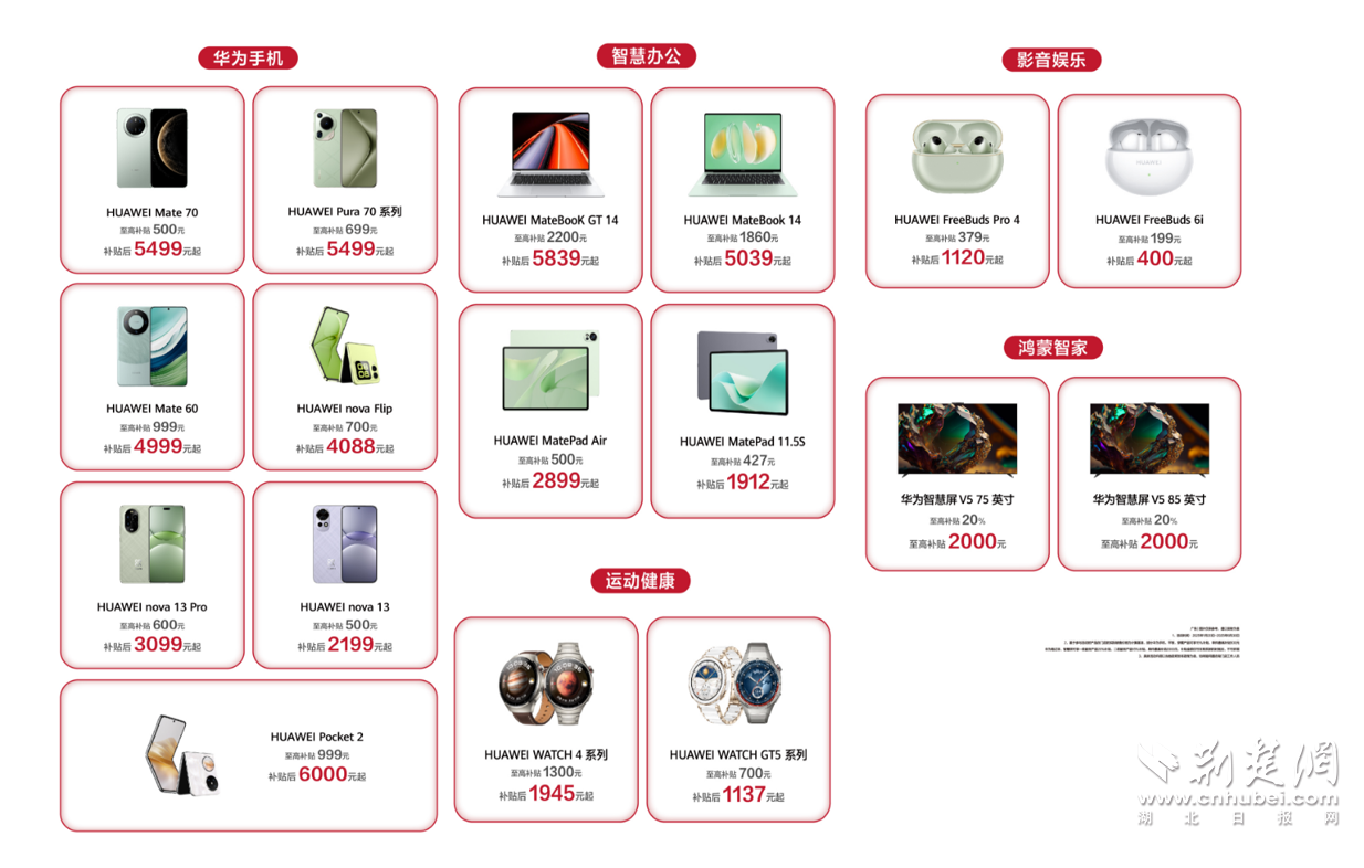 在此基礎優(yōu)惠下,即日起到店購買部分華為手機、平板、穿戴產(chǎn)品,至高補貼15%,單件最高補貼500元;華為筆記本、智慧屏至高補貼20%,單件最高補貼2000元!到店可疊加更多優(yōu)惠活動,歡迎來湖北華為門店咨詢選購!