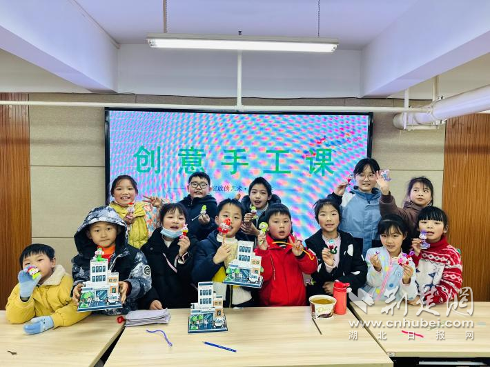 “爸爸媽媽白天要上班,在這里我可以和老師同學(xué)們一起玩,寒假一點(diǎn)都不無(wú)聊了。”在手工課上,在志愿者的引導(dǎo)下,何紫琳與同學(xué)們一起制作小蛇,親手完成的作品將作為社區(qū)公共空間的裝飾,慶祝新年的到來(lái)。