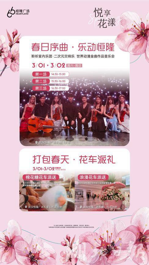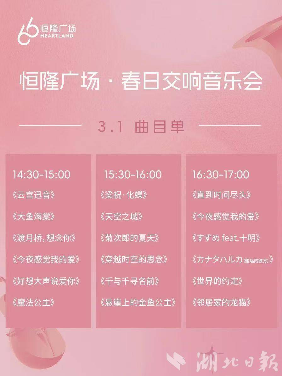 3月1日-2日,春日動(dòng)漫金曲音樂會(huì)即將在武漢恒隆廣場舉行。本次音樂會(huì)由聆聽室內(nèi)樂團(tuán)帶來,邀請武漢市民共賞“春日序曲”。