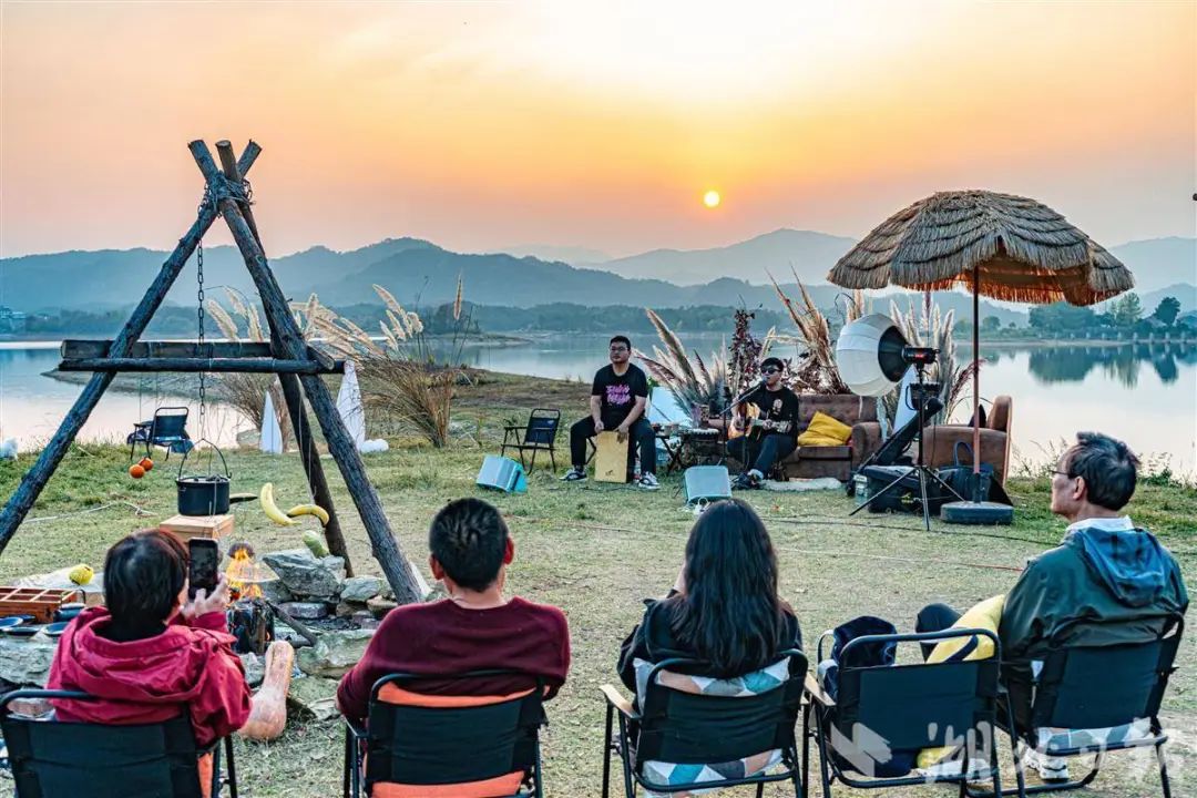 在山島里營地,荒廢的水塔被改造成了藝術打卡點——“時光之塔1950”,營地里增設了咖啡廳,新開辟專門的露營區(qū)和燒烤區(qū)。此外,還引入皮劃艇、槳板等水上運動項目,增加全地形車山地越野項目,豐富游客的水上戶外和山地探險體驗。此外,還設計了砍柴、挖地窖、烤叫花雞等沉浸式游玩活動。