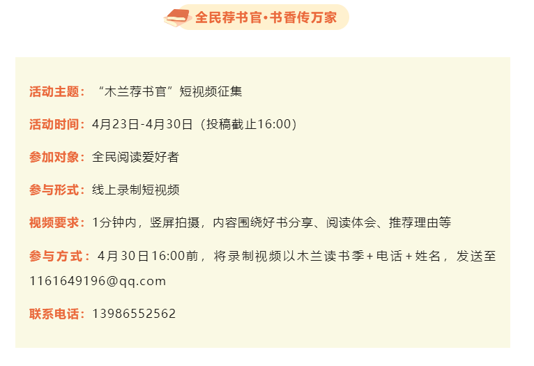 無(wú)論您是深耕文字的名家學(xué)者,還是熱愛(ài)閱讀的普通市民,只要您愿以真誠(chéng)分享好書(shū),即可成為"木蘭薦書(shū)官"!