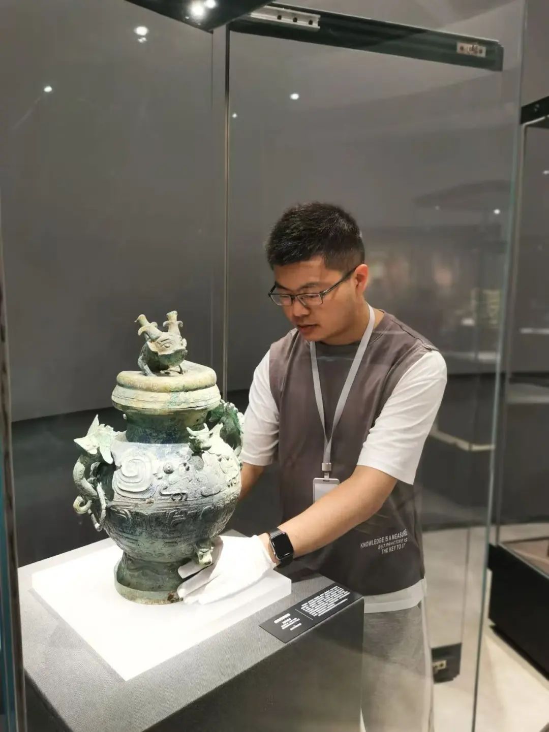 2021年6月,廖航在盤龍城遺址博物院開展“長(zhǎng)江萬里青——長(zhǎng)江流域青銅器精品展”布展工作
