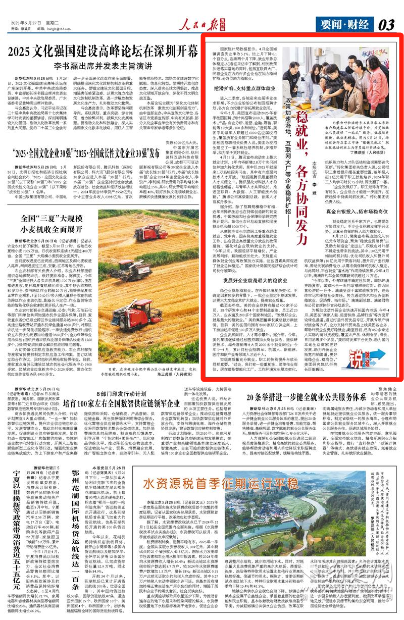 《人民日報海外版》在文章中提到,穩(wěn)企業(yè)就是穩(wěn)就業(yè),不少企業(yè)積極發(fā)揮平臺優(yōu)勢,以真金白銀的投入助力穩(wěn)就業(yè)。美團2025年春季預(yù)計校園招聘5000人,覆蓋10大類、100余種崗位,助力學(xué)子更好就業(yè);為了幫助優(yōu)質(zhì)外貿(mào)企業(yè)快速開拓國內(nèi)市場,美團通過多種方式支持外貿(mào)商品上線美團各業(yè)務(wù),幫助外貿(mào)企業(yè)更好穩(wěn)就業(yè)。