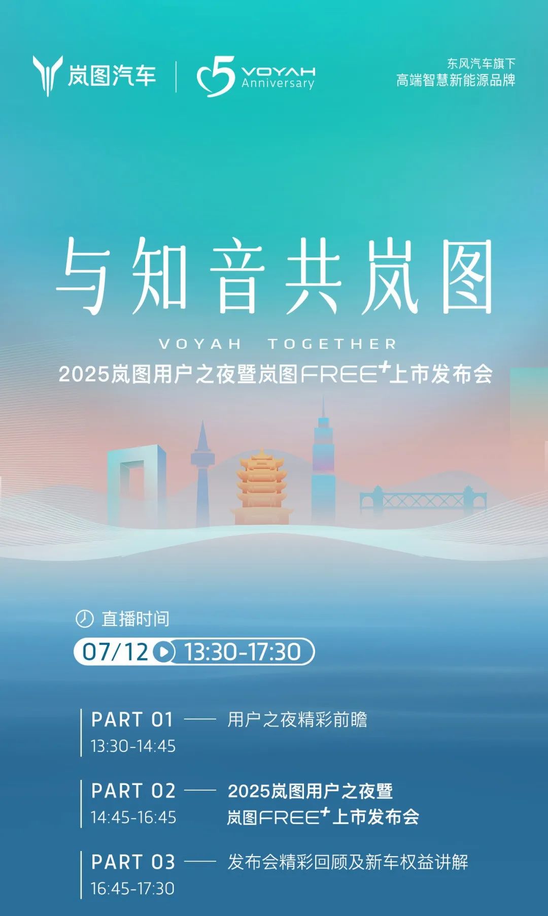 7月12日,2025嵐圖用戶之夜活動(dòng)將在武漢經(jīng)開區(qū)舉行。屆時(shí),5000多位嵐圖用戶代表將齊聚車谷,備受期待的嵐圖FREE+將正式上市,全新嵐圖知音也將煥新亮相。