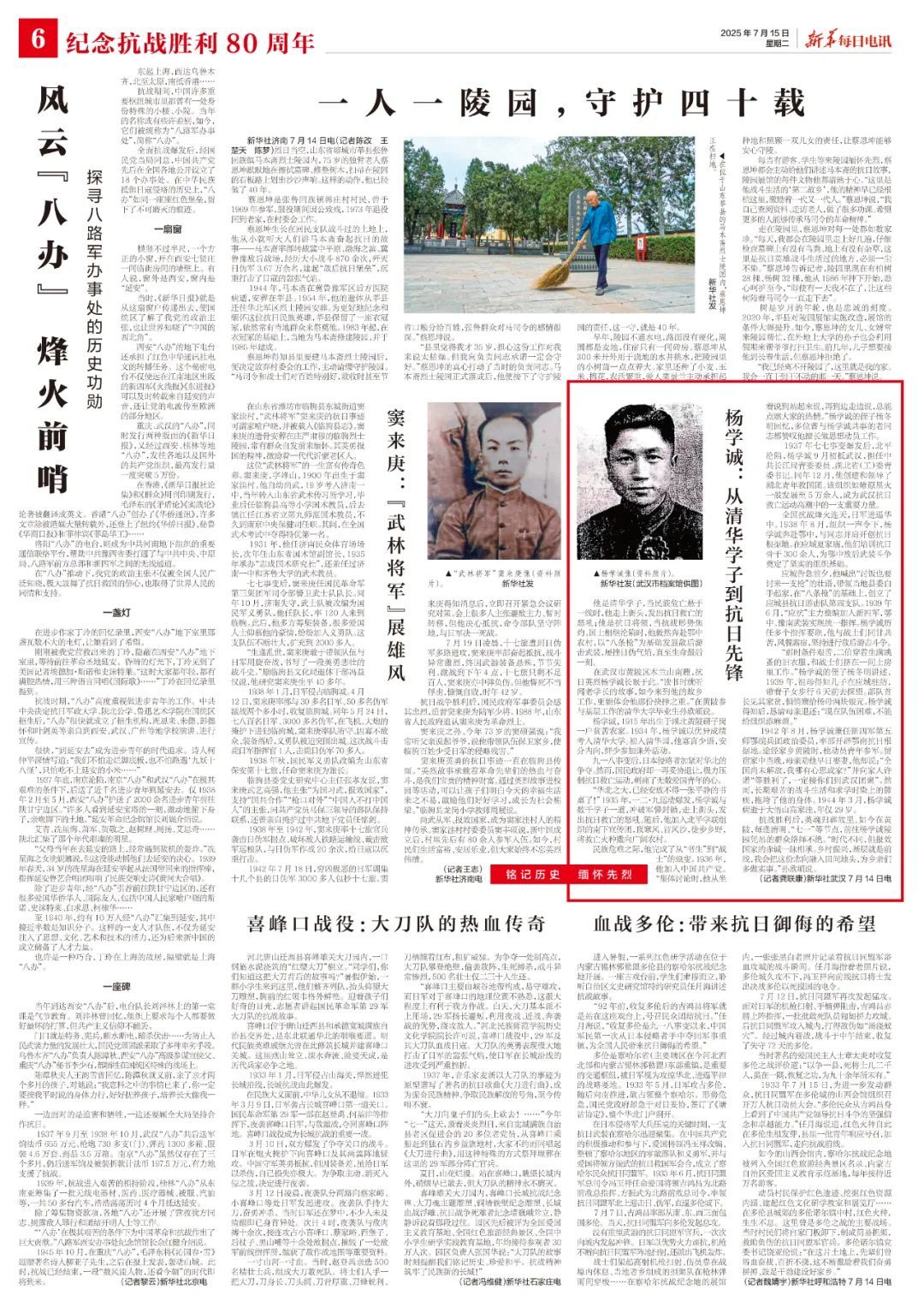 報道講述了黃陂籍抗日英烈楊學(xué)誠的傳奇歷程