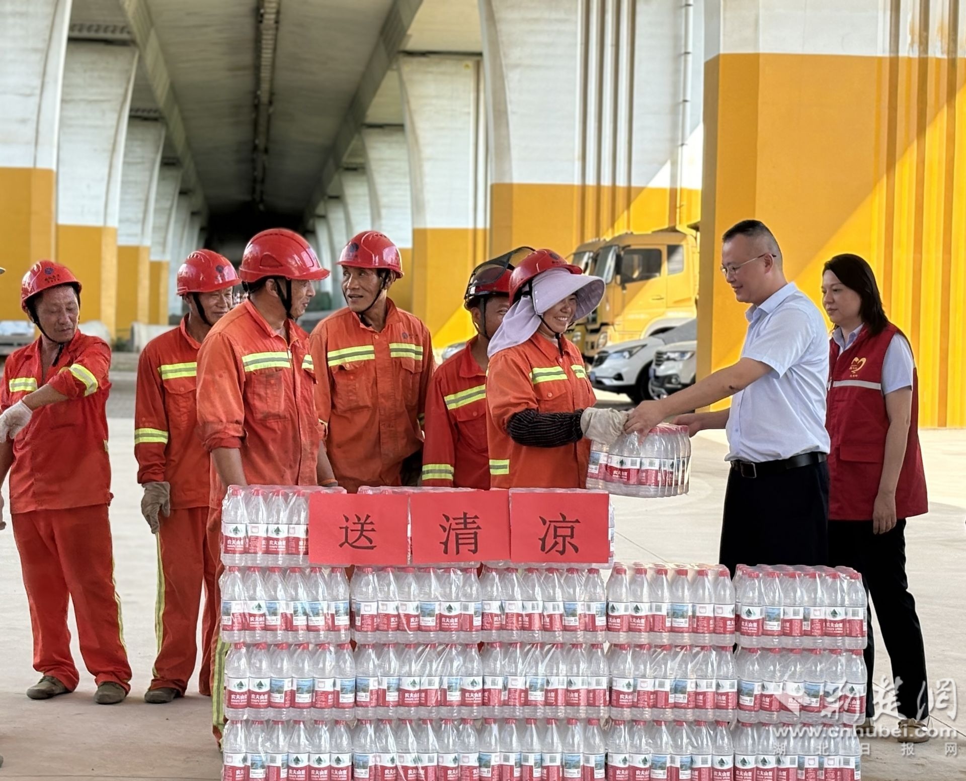 上午9時,支部黨員代表一行首先來到金港一號社區(qū)黨員服務(wù)中心,將新鮮西瓜送到社區(qū)工作者手中。隨后,他們前往湖北高開公司武漢分區(qū)施工一線,為冒酷暑作業(yè)的工人送去礦泉水、藿香正氣液等防暑物資。在施工現(xiàn)場,黨員們詳細(xì)了解工程進(jìn)展和防暑措施落實(shí)情況,叮囑企業(yè)科學(xué)安排作息,確保安全生產(chǎn)與職工健康“雙保障”。
