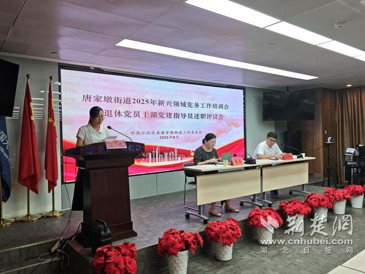 荊楚網(wǎng)(湖北日報網(wǎng))訊(記者 何婧 通訊員 袁蘊萁 顧蝶)8月5日下午,江漢區(qū)唐家墩街道召開2025年新興領(lǐng)域黨務(wù)工作專題培訓(xùn)暨退休黨員干部黨建指導(dǎo)員述職評議會。來自街道黨建指導(dǎo)員、企業(yè)黨組織、社區(qū)黨委等50余名黨務(wù)骨干齊聚一堂,聚焦履職能力提升,推動“兩企三新”黨建提質(zhì)增效。