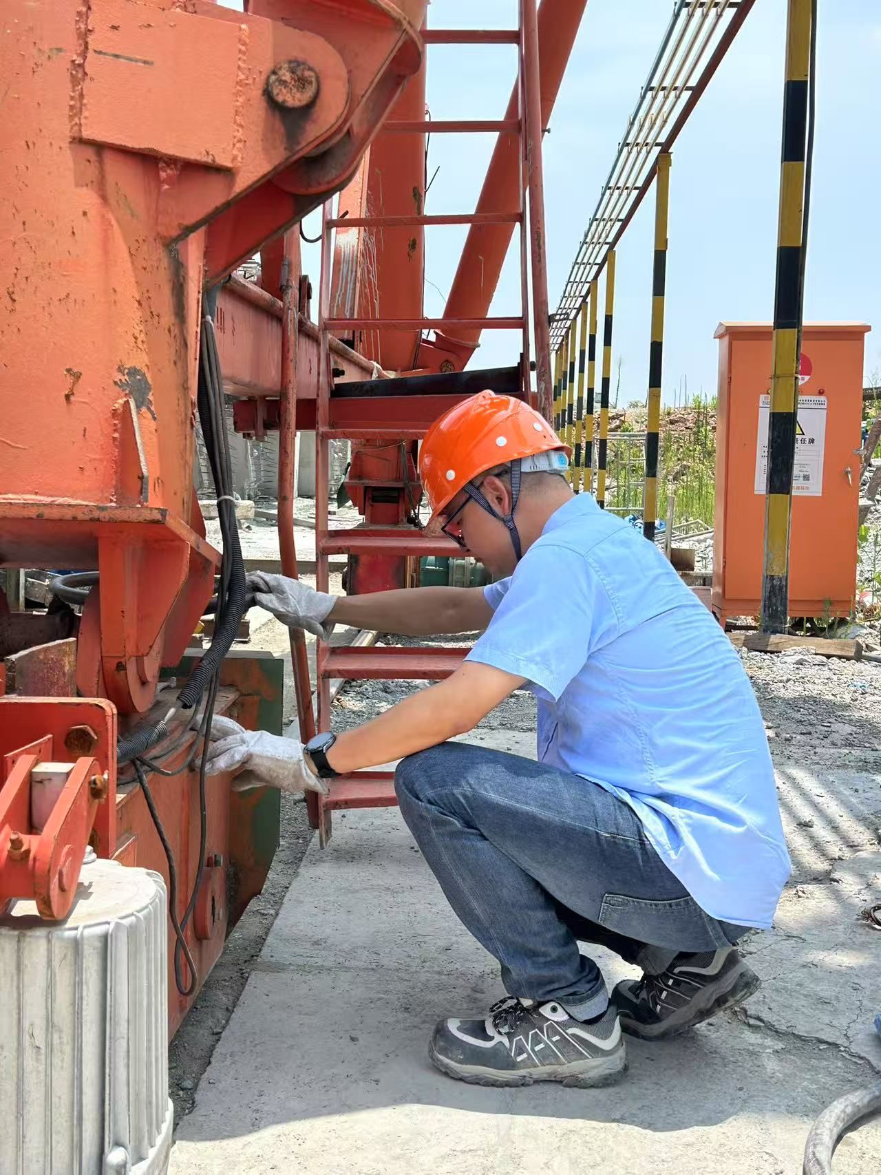宜昌分院——枝松高速公路的工地上,8名技術(shù)骨干攀上22臺起重設(shè)備,架橋機(jī)、塔機(jī)、施工升降機(jī)....不放過每一處細(xì)節(jié)。