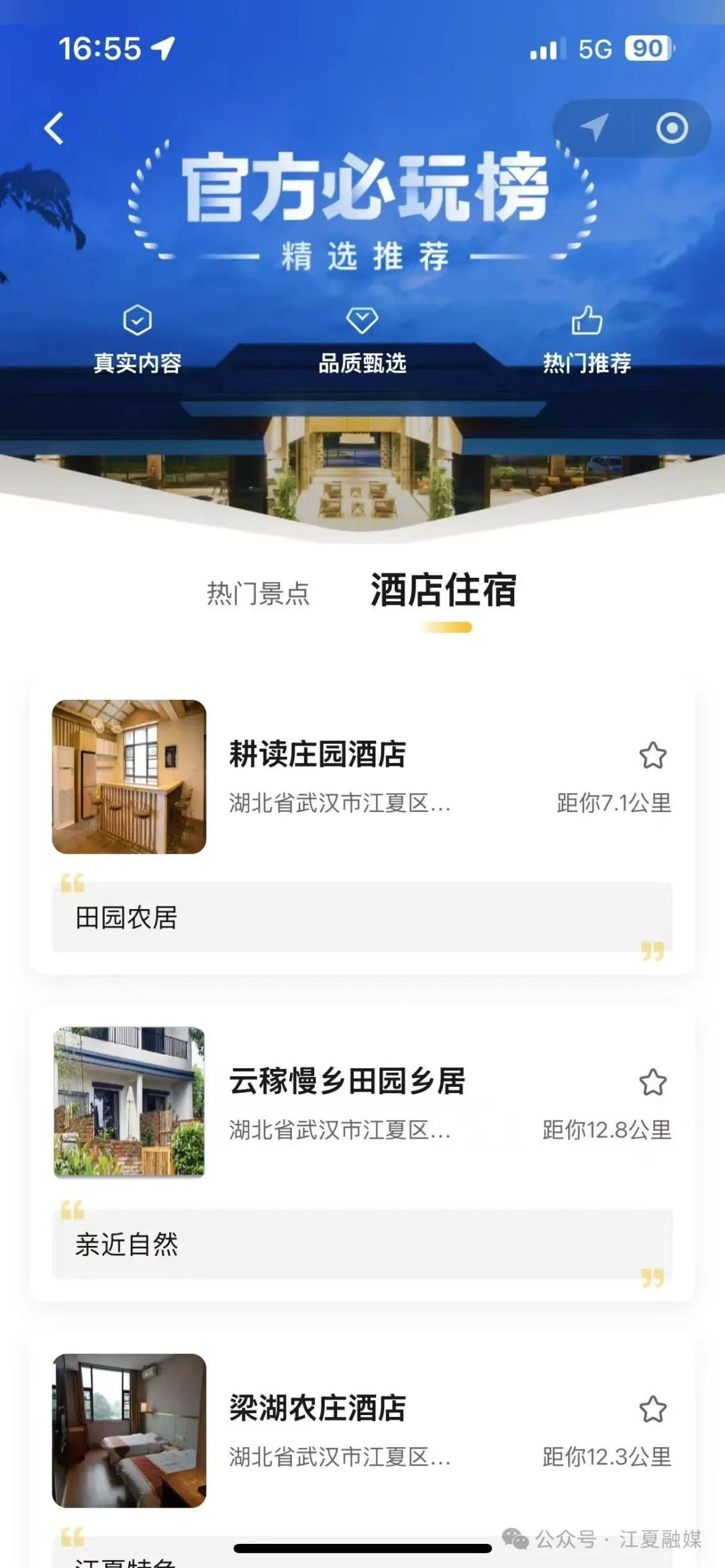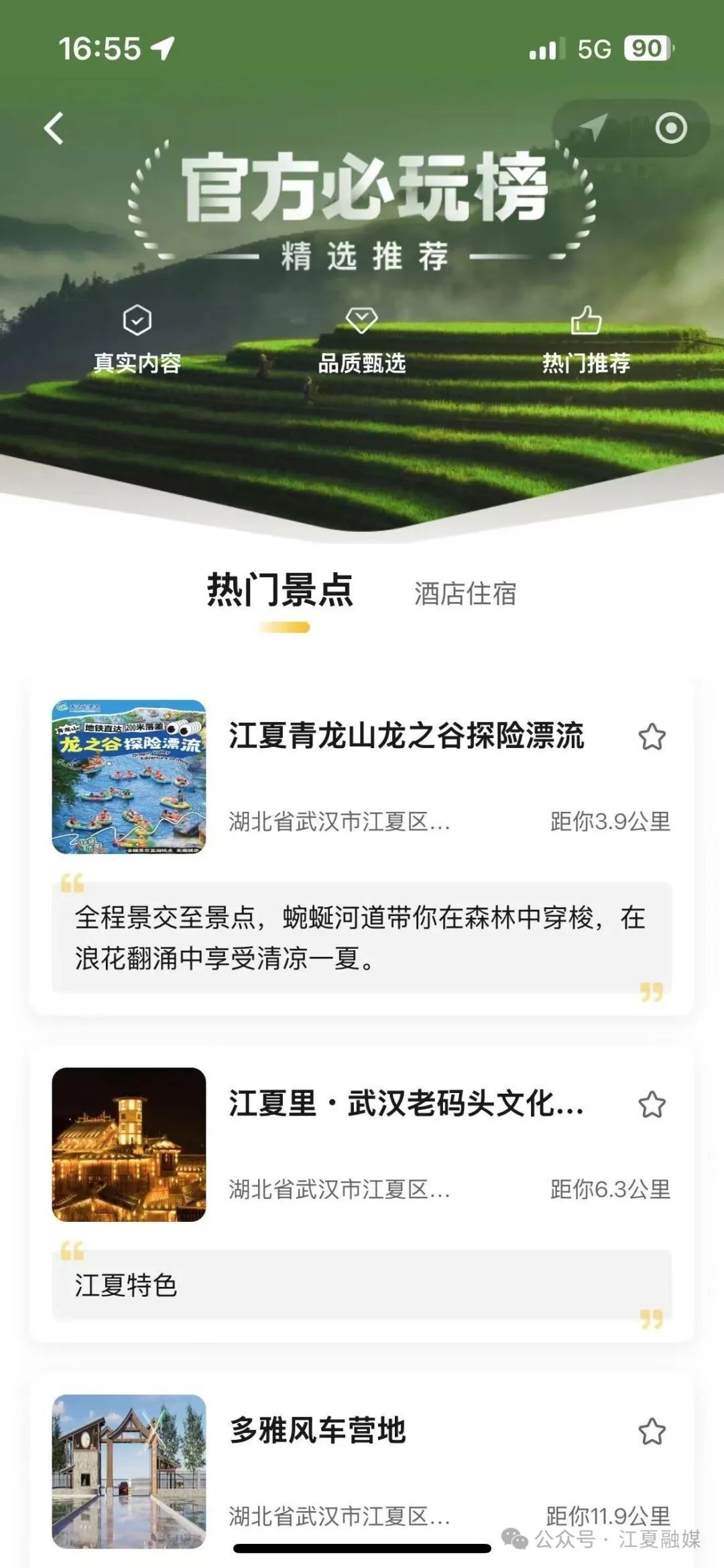 要是你想直奔熱門景點,那“官方必玩榜”可一定得看,這里把江夏熱門景區(qū)、酒店住宿等項目一網(wǎng)打盡,輕松獲取各景點的詳細介紹,像八分山、梁子湖風(fēng)景區(qū)、小朱灣這些熱門景點,除了精美的圖文介紹,還能一鍵導(dǎo)航,直接規(guī)劃好去景點的路,線真的太方便了!