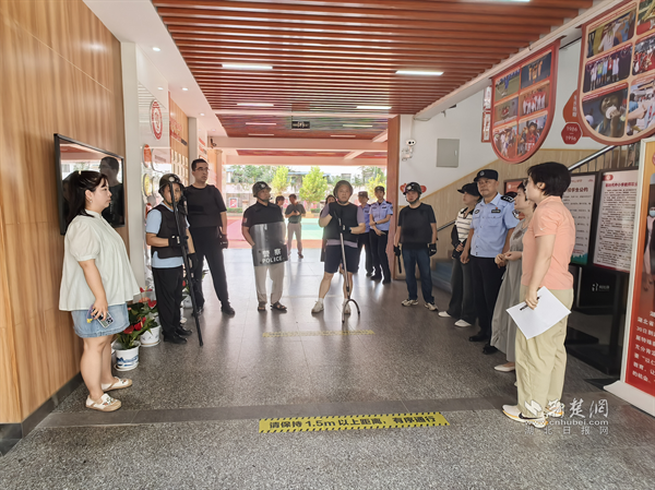 演練前,社區(qū)工作人員、派出所民警與學校教師共同圍繞演練流程、應急響應機制等內(nèi)容進行深入交流與細致部署。派出所民警現(xiàn)場演示了防暴盾牌的格擋、推進等實戰(zhàn)技巧,詳細講解了防暴鋼叉等器械的使用方法,強調(diào)不同情境下器械配合與人員分工的要點,為演練順利開展奠定堅實基礎。