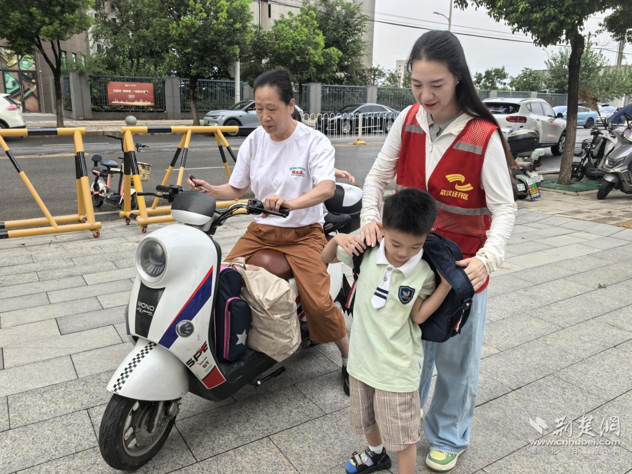志愿者在校門口守護(hù)孩子們返校。通訊員供圖
