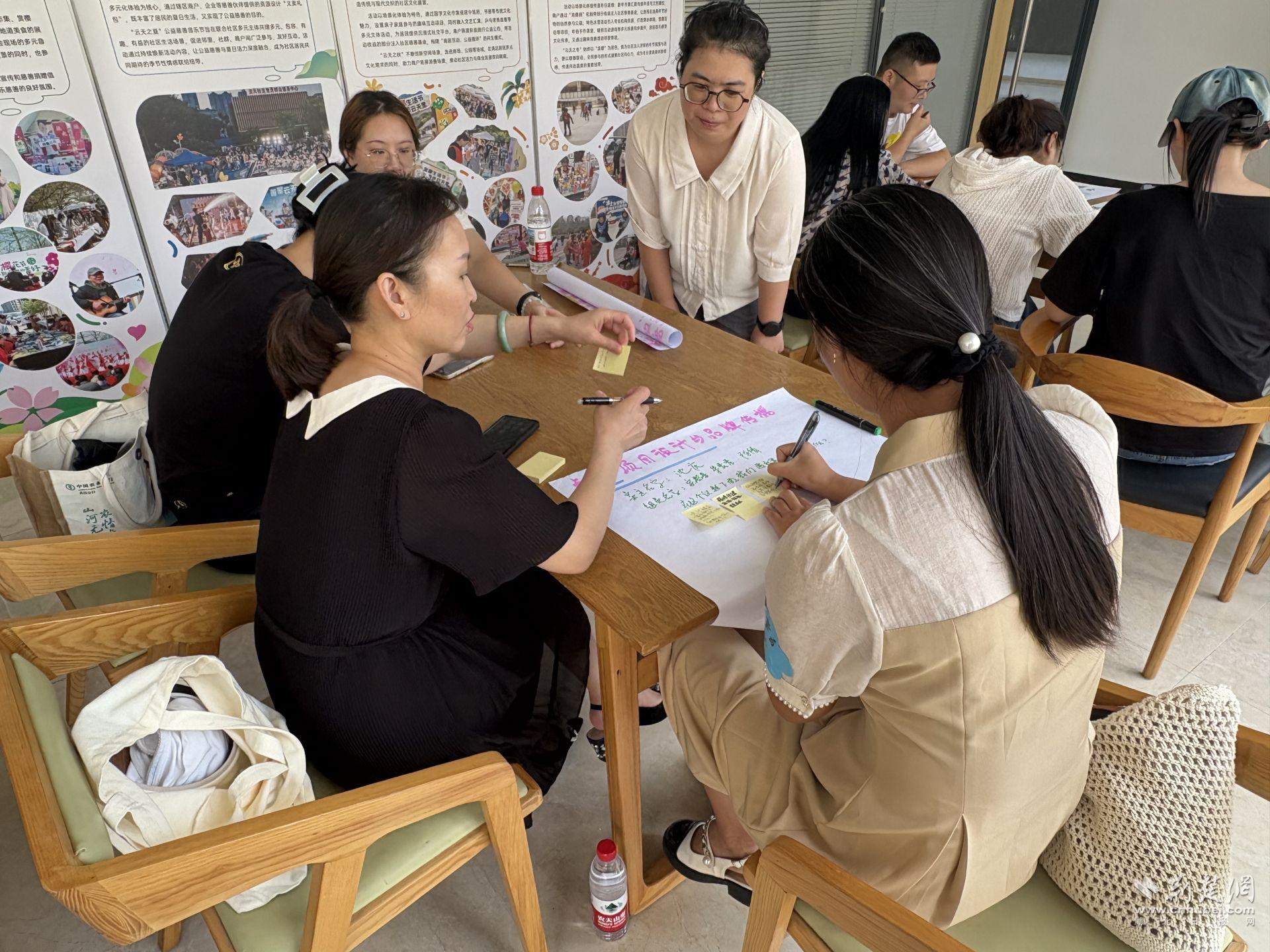活動伊始,與會社工們很快進入狀態(tài),“專業(yè)社工+志愿服務”究竟應該如何助力社區(qū)慈善的可持續(xù)發(fā)展?他們圍繞“資金籌募與資源整合”“項目設計與品牌傳播”“志愿者賦能與社區(qū)動員”三個議題展開三輪討論。