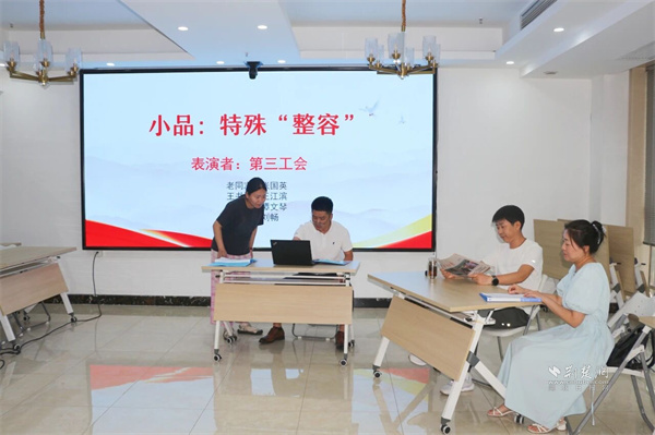 才藝展示團(tuán)隊(duì)賽環(huán)節(jié),《心靈美容院》《“照鏡子 正衣冠”研討會》《特殊整容》等精彩節(jié)目輪番上演。黨群干部通過小品、朗誦、合唱等多元形式,生動呈現(xiàn)在思想引導(dǎo)、作風(fēng)建設(shè)和團(tuán)隊(duì)凝聚中的實(shí)踐與思考,剖析了工作中的“痛點(diǎn)”“堵點(diǎn)”,映射出黨群工作者直面問題的工作實(shí)效。