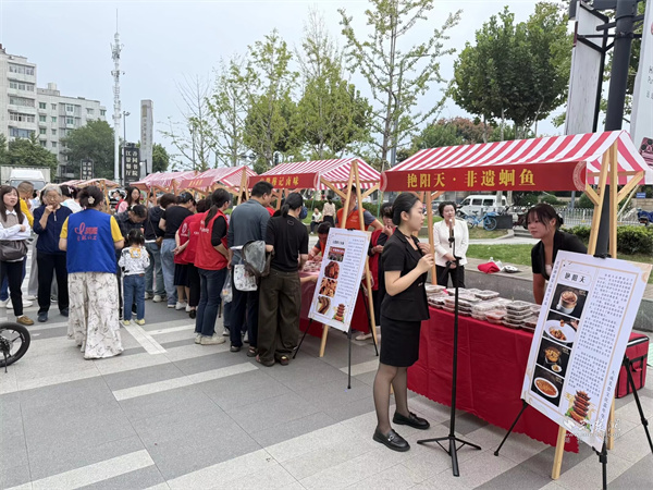 活動現(xiàn)場設(shè)置市集區(qū)與演藝區(qū)兩大板塊。市集區(qū)內(nèi)人頭攢動,轄區(qū)共建單位、音樂企業(yè)與多家商戶積極參與,匯聚特色商品與音樂互動體驗(yàn)。大音琴行展出多種樂器并銷售音樂周邊產(chǎn)品,吸引眾多武漢音樂學(xué)院學(xué)生及音樂愛好者駐足交流;元祖食品推出月餅、點(diǎn)心等節(jié)令糕點(diǎn)展銷,為中秋佳節(jié)提前預(yù)熱;艷陽天·非遺鮰魚(黃鶴樓店)、中百倉儲、九州上醫(yī)館及多家大成路特色美食商戶也紛紛設(shè)點(diǎn),讓市民在觀賞演出之余,盡享購物與美食樂趣。
