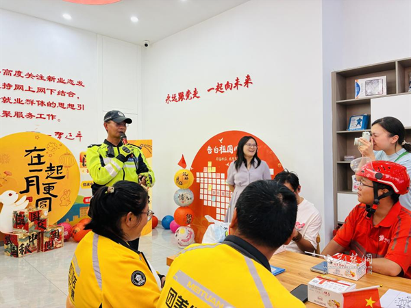 荊楚網(wǎng)(湖北日?qǐng)?bào)網(wǎng))訊(通訊員 劉蘭蘭)9月28日下午,武昌區(qū)黃鶴樓街道新就業(yè)群體服務(wù)驛站、黃鶴先“蜂”新時(shí)代文明實(shí)踐點(diǎn)內(nèi)暖意融融,一場(chǎng)以“月滿華誕 驛家同歡”為主題的中秋國(guó)慶雙節(jié)特別活動(dòng)在此開展。活動(dòng)通過一系列精心設(shè)計(jì)的環(huán)節(jié),為快遞員、外賣騎手等新就業(yè)群體送上溫暖節(jié)日祝福,搭建互動(dòng)交流橋梁,切實(shí)提升其歸屬感與幸福感。