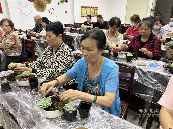 多肉微景觀制作環(huán)節(jié),在專業(yè)園藝師的指導(dǎo)下,居民們專注搭配多肉植株、營養(yǎng)土與彩色鋪面石,巧妙裝點(diǎn)小花盆與玉兔玩偶,不時(shí)交流種植心得,詢問養(yǎng)護(hù)技巧。不一會(huì)兒,一個(gè)個(gè)融合綠意與中秋意象的微景觀陸續(xù)完成,翠綠植株與靈動(dòng)玉兔相映成趣,洋溢著溫馨與創(chuàng)意。