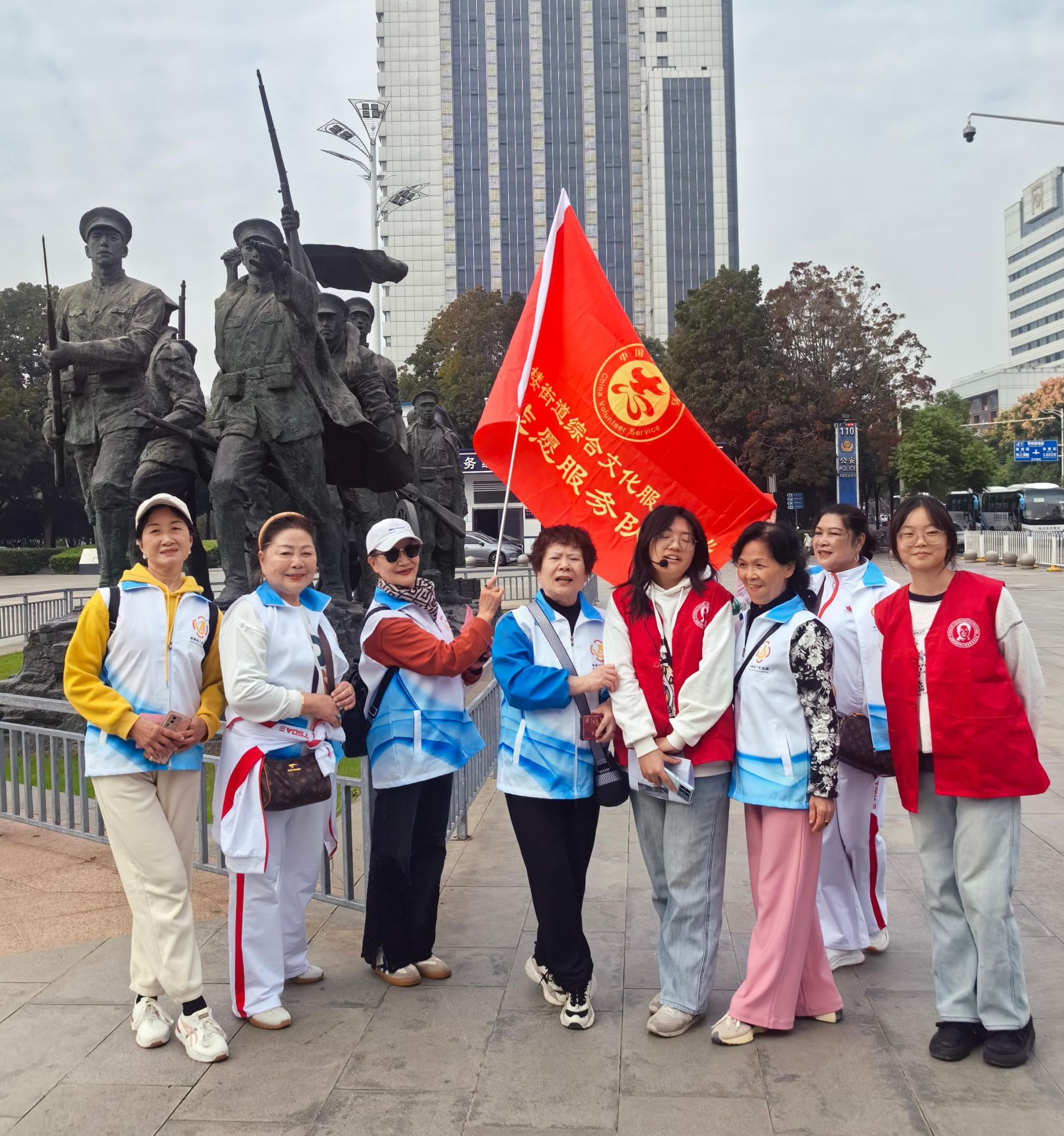 活動當(dāng)日上午,參與人員在武漢長江大橋集結(jié)出發(fā)。隊伍配備志愿者與醫(yī)護人員全程護航,確保活動安全有序。行進路線串聯(lián)起陳友諒墓、“三井一臺”、孫中山銅像、首義廣場等轄區(qū)重要文化地標(biāo),形成一條獨具特色的“文化探秘路線”。